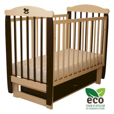 Кроватка "Соня 04" имеет механизм качания поперечный маятник. Механизм качания фиксируется. Возможен вариант с ящиком.