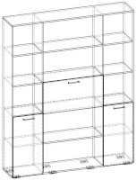 Применение задней стенки из ЛДСП (в ячейках с фасадами) позволяет использовать данный стеллаж для зонирования пространства (чтобы предотвратить опрокидывание, необходимо обеспечить крепление стеллажа к стене).