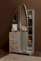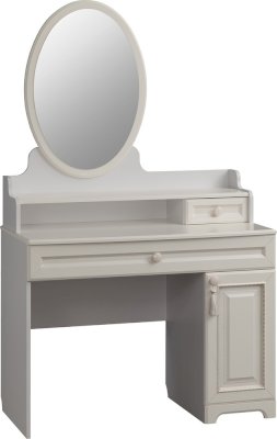 Трюмо из серии «Белла» – настоящая находка для истинных леди. Трюмо сочетает в себе утонченный дизайн, функциональность и удобство. Столешницу из МДФ украшает фрезеровка.