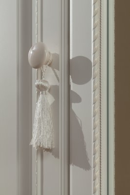 Комод: Корпус – ЛДСП 16 мм Фасады – МДФ с пленкой ПВХ и патиной Кромка – ПВХ 0,4 мм Направляющие – шариковые Ручки – фарфоровые Декор – кисти для штор Опоры – пятниковые