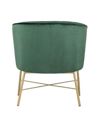 Современное кресло с подлокотниками и металлическими ножками. Обивка выполнена из прочного и износостойкого велюра. Широкая спинка, переходящая в подлокотники высотой 70 см от пола, и мягкое сиденье обеспечивает удобную посадку и уют. Украшает кресло декор на внутренней стороне спинки и металлический каркас в золотом цвете.