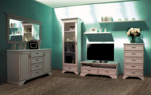 Кентаки - мебель классического стиля, отличающаяся природными цветами, отделкой фактурой, всегда актуально и востребована, она настолько универсальна, что без проблем впишется в любой современный дизайн. Стиль набора модульной мебели подчеркивается лакированной патинированной планкой в фасадах, карнизами - завершающим акцентом в зеркалах и высоких элементах набора, витиеватыми ручками. Пять узких, но вместительных выдвижных ящика.
