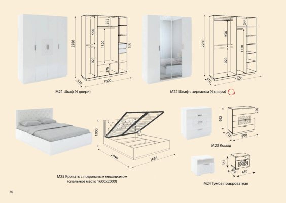 2. Комод М23 и тумба М24 имеют столешницы из ЛДСП 22 мм и направляющие полного выдвижения.