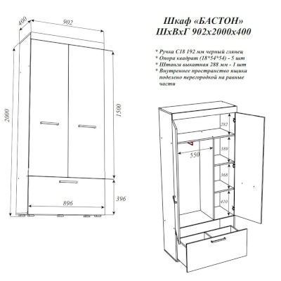 Шкаф Бастон (Эра) - за 12 440 руб. в Домодедово. Купите на сайте domodedovo.onlinemarketmebeli.ru или по телефону 8(800)505-30-63 уже сегодня! Уточнить наличие, комплектацию, актуальную цену можно бесплатно у менеджера ежедневно. Закажите Шкаф Бастон (Эра) до конца акции! Доступна покупка в кредит, рассрочку. Доставим со склада или на заказ.