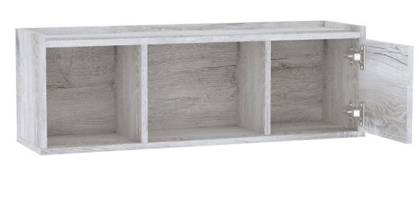 Компактный навесной шкафчик с открытыми и закрытыми нишами - удобный способ настенного хранения самых разных вещей. Такую навесную полку рекомендуем использовать как функциональную надстройку для тетрадей, книг и учебников над письменными столами Флекс 15 и 115 или над комодом Флекс 6. Полка навесная собирается как на левую, так и на правую сторону.