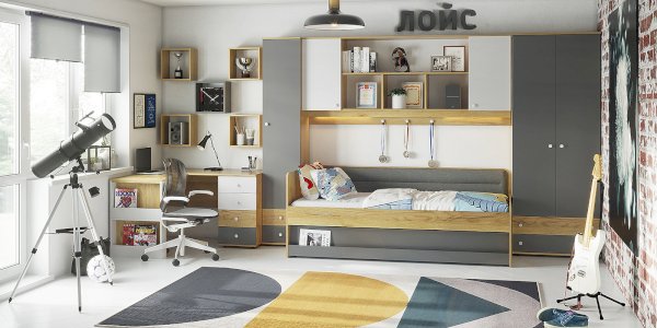 Навесные шкафы-мосты с функцией ночника привлекательны для детей и для поклонников оригинальных решений. Включается и выключается диодная подсветка ночника при помощи маленького аккуратного выключателя. Также Шкаф навесной - очень практичное решение, он позволяет рационально использовать пространство над кроватью, объединяя в себе ниши, полочки и шкафчики за глухими фасадами. Белые ручки на пристенной панели играют роль крючков-гвоздиков для возможности декорирования зоны отдыха ребенка. Обращаем ваше внимание на то, что 81 Шкаф навесной обязательно крепится к стене на уголки и должен быть установлен и дополнительно закреплен между двумя высокими шкафами. Самостоятельное его размещение на стене не рекомендуется!