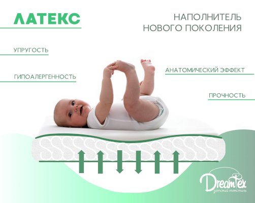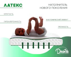 Идеально подходит для большой трансформации кроватки Dreams Smart. Трехслойный матрас позволяет регулировать жесткость спального места, а натуральные материалы (кокос, латекс) создадут оптимальный ортопедический эффект от эксплуатации. Кокосовая койра – качественный, натуральный, износостойкий материал, используемый в матрасном производстве в качестве жесткого наполнителя. Натуральный латекс – это природный материал, переработанный сок каучукового дерева. Данный материал экологически чистый, упругий и долговечный. Латекс обладает антибактериальными свойствами, не накапливает влагу, отлично дышит. Упругая структура наполнителя дает отличный ортопедический и анатомический эффект.